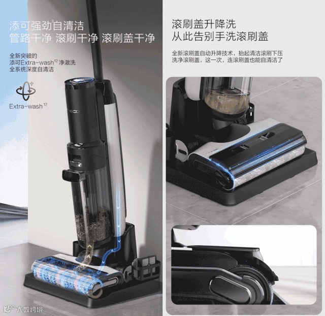 而在今年的新品上,除了在洗地时的恒压活水清洁系统,添可又新增一项王牌自清洁技术——Extra-wash净澈洗自清洁系统。