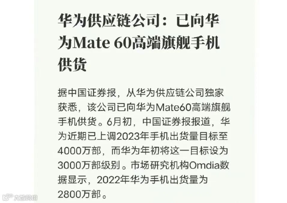 华为自己也很看好Mate60系列,早前华为将今年的出货量目标从3000万台升级到4000万台,可见其对销量抱有极大信心。而这一举动,在当时很多网友看来,也是5G回归的一大信号。