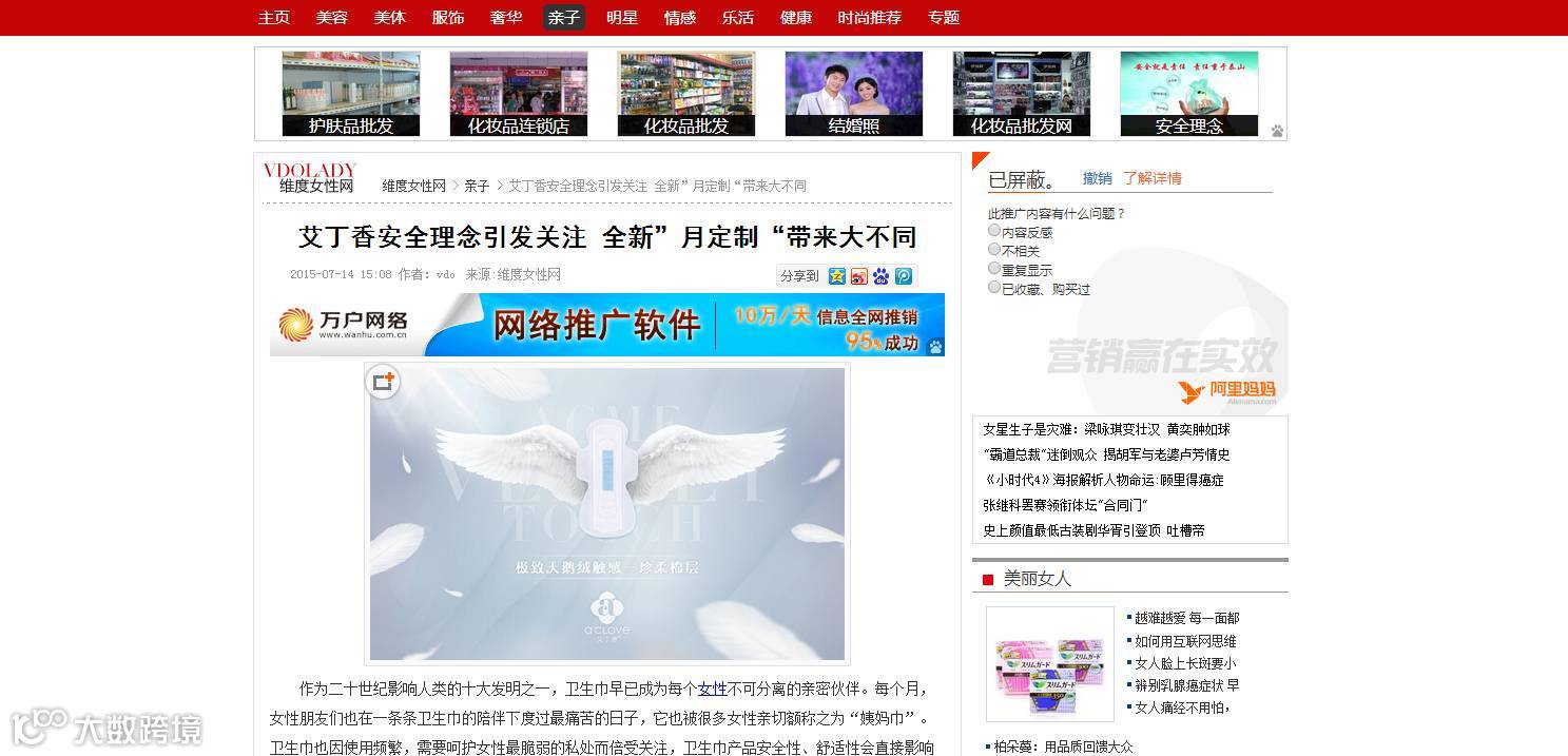 各大媒体争先报道全球首创零氧真空包装卫生巾为广大女性群体定制月事包服务