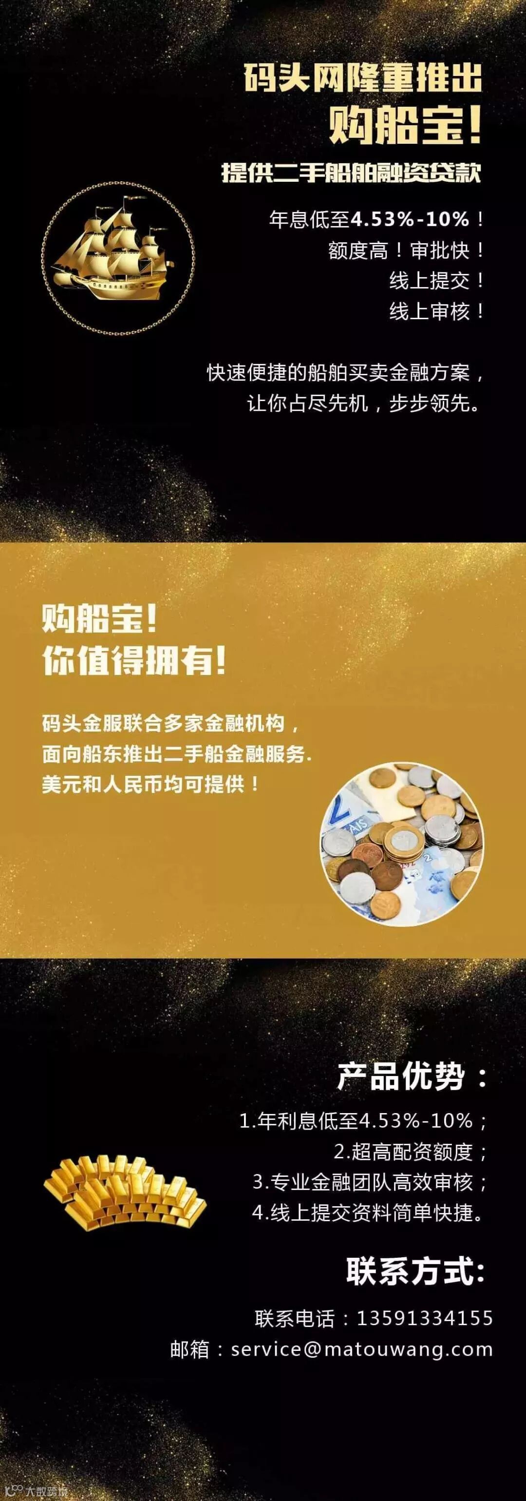 日前码头网与中国银行经过数月磋商及产品设计,基于码头网线上平台数据,共同推出为中小船东融资贷款服务,解决民营船东融资难、融资贵的难题。