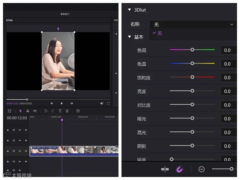 支持准专业级的3d lut调色效果,导入调色cude一秒迁移电影级调色。