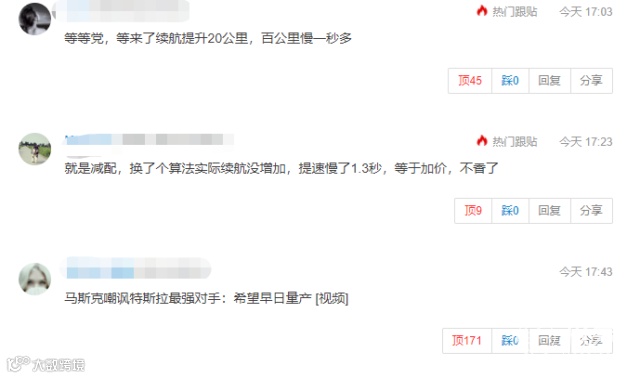 毕竟,6.9s的百公里加速时间在传统家用燃油车市场还算不错,但在纯电动车领域确实有点慢了。并且在电机不变的情况下,加速反而慢了,有可能是特斯拉通过软件系统限制电动机功率输出。甚至还有网友认为,说不定未来车主还可以通过后期买加速包,然后来提速,让特斯拉再赚一道钱。