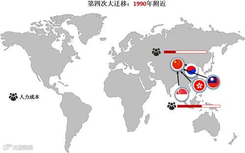 全球范围内出现过四次大规模制造业迁移