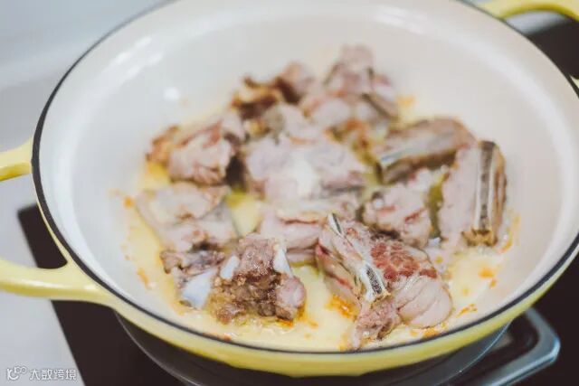 北鼎焖焗珐琅锅的拿手好戏就是做肉类,所以一定要用排骨试试锅,果然没让我失望。这道菜先用北鼎焖焗珐琅锅来煎排骨,煎到两面金黄后捞出。这个煎制的过程需要稍微放一点点油,不必放很多,随着煎制的过程排骨会出油,这样就不会粘锅底。