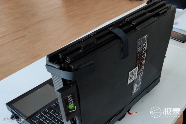 首先打开上盖就看到几块屏幕被满满当当的塞在里面,并且还用上了“原始粗暴”的绑带进行固定,尽显粗犷的原始机械风。