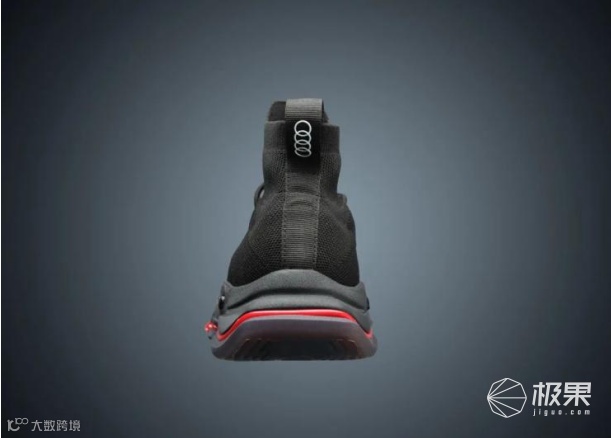 想必大家也注意到了,鞋中底的红色quattro标识非常显眼,其实这里有一个小机关:用上了“可触控开启灯光技术”,鞋里内置quattro芯片,当人手扫过这个区域时,quattro标识就会亮起来,一个字:酷。