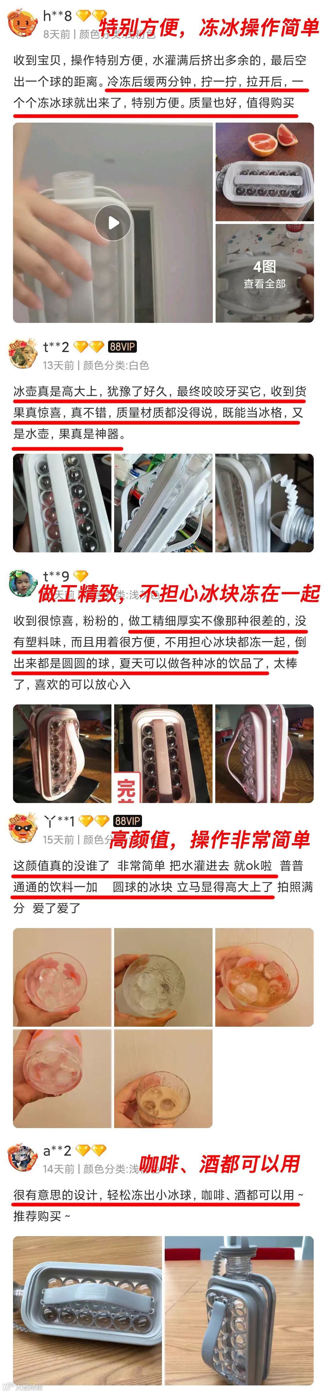 日常冻完冰,冰球不用倒出来,可以直接往里倒饮料,简直是加倍冰镇快感!