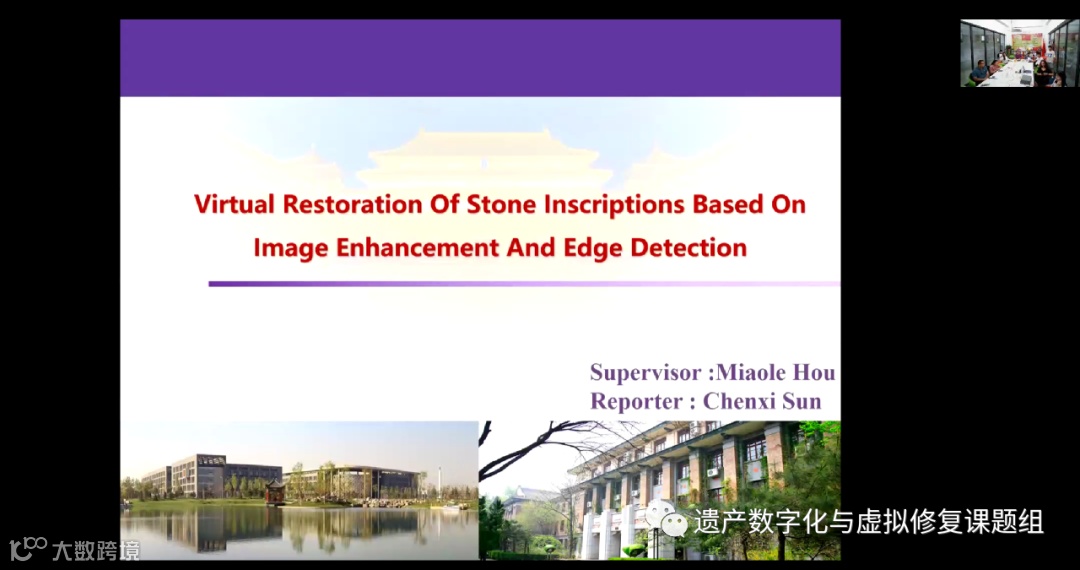 北京建筑大学数字化与虚拟修复课题组的孙晨曦同学作了题为“Virtual Restoration Of Stone Inscriptions Based On Image Enhancement And Edge Detection”的报告。她提出一种针对模糊碑文碑刻文字虚拟修复的方法,实验结果证明了该方法可针对模糊文字进行复原并保留原石碑文字书写风格。她的实验为北京中轴线上其他碑刻的文字虚拟修复提供了参考依据。