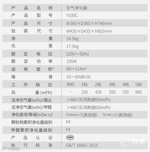 实际使用体验开始前我们先来看一下净化器的基本参数如何,通过图表我们可以对想要了解的参数一目了然。