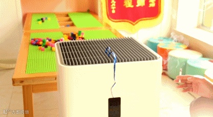 间距较宽的出风口,一定会有小伙伴会问,间距这么宽的出风口,一旦掉进去异物怎么办,会不会掉到里面的扇叶或者电机内部损坏净化器呢?我们请来家里最喜欢做这种事的小朋友来亲身实践一下。