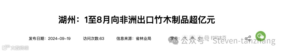 - 非洲城市化率已达40%,带动对环保、高性价比竹制办公椅、餐具的旺盛需求;湖州安吉竹制品出口南非同比增长17.6%。