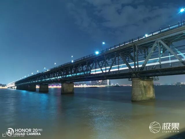 从西湖回到市区,天色渐晚,穿梭的车辆将钱塘江大桥变成了灯火辉煌的灯带,在夜晚光线条件较差的情况下,荣耀20 PRO展现出让人惊喜的夜拍能力,有了双OIS四轴光学防抖,哪怕是手持也清晰拍下钱塘江大桥的雄伟,没有一点模糊,甚至将细节还原到位,桥底暗部结构也没有放过。