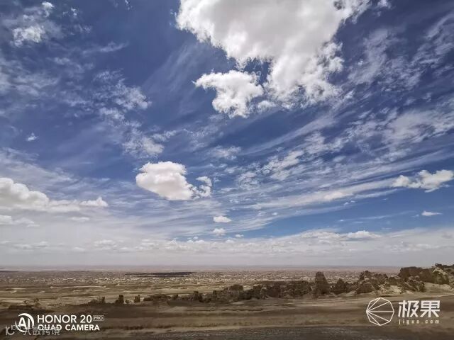 虽然整个过程中,极果君并没有使用专业的拍摄设备,但荣耀20 PRO再次展现了它强大的拍摄能力,在4800万后置四摄与30倍变焦的帮助下,无论是微小的石块,还是远处山坳的走势,都能完整的记录下来。