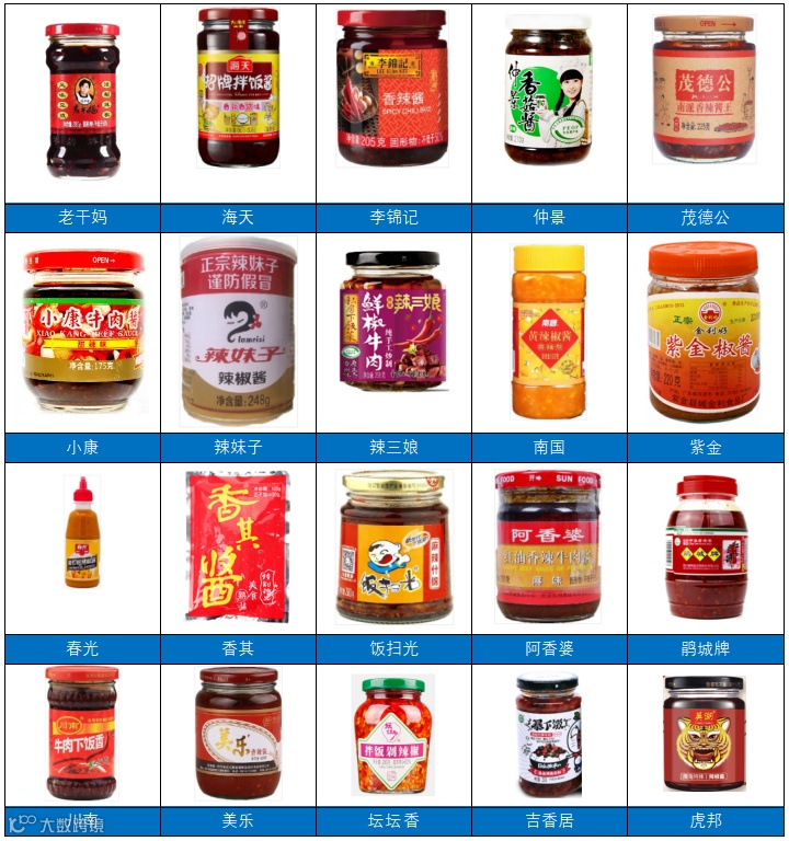表:各式辣酱品牌一览