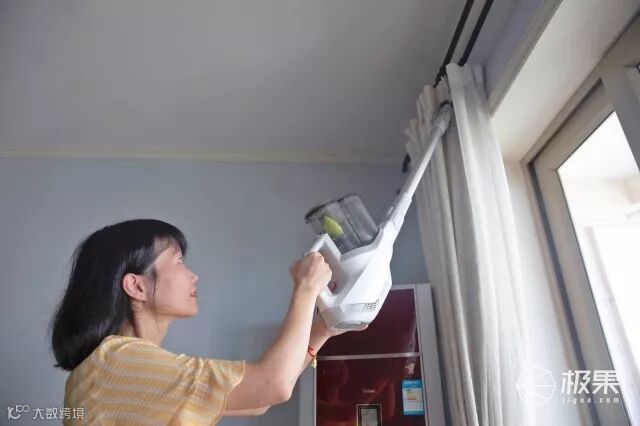 还自带了一个可折叠的刷头,供清理角落和缝隙时使用,打扫高处的窗帘也OK。
