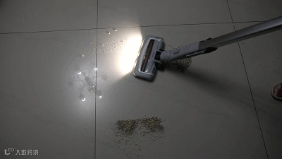 猫毛实在太细小了,可能大家看不清楚,我又撒了一把猫砂来测试。吸头吸过去地面马上干干净净了~