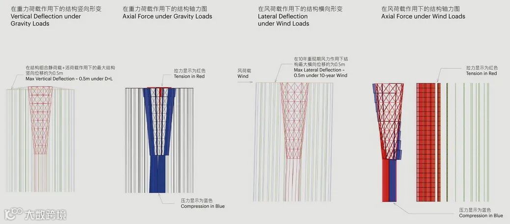 该塔主要由钢、碳纤维、凯夫拉尔绳索和混凝土建造,,由一个中央核心支撑,其平衡由位于外围的凯夫拉尔拉力绳索的钢桁架系统来维持。由此产生的印象是顶部有一个强大的水平面,随着密集的塔楼逐渐下降,水平面逐渐消失。该项目将引入一个新的观景平台和展览空间,以及一个餐厅和咖啡馆。