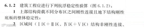 增加了按不同区域验算抗浮稳定性验算的要求,区域划分考虑了抗震缝、沉降缝、变形缝、后浇带、基础形式及上部荷载等因素,简而言之就是结构差异明显的都算一算,防止整体满足但是局部某一区域不满足稳定性要求。如果每一个墙柱的设计标准值/浮力标准值>抗浮稳定系数,也不存在额外验算的必要了。