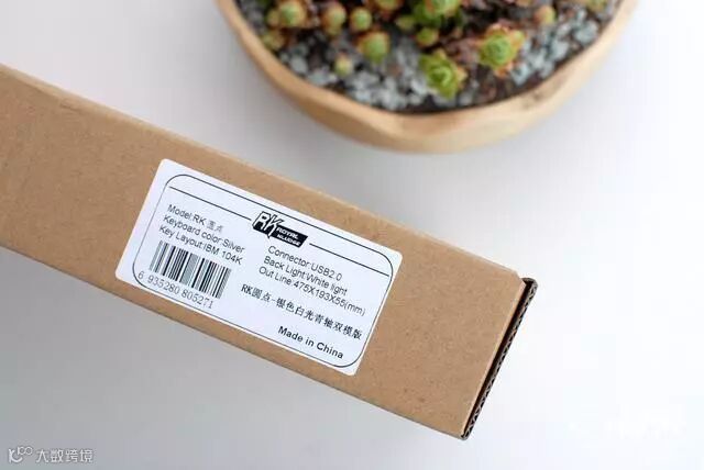 还好有侧面的标签,RK圆点-银色白光青轴又模版机械键盘,标准的104键,接口为USB2.0。