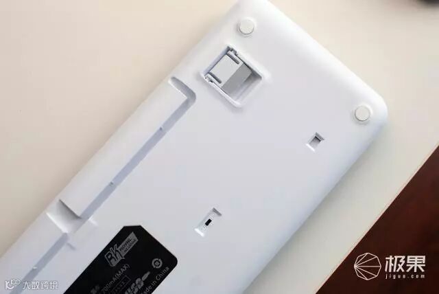 位于铭牌旁边的电源开关键,前面说过RK圆点键盘除了具有机械键盘的特性之外,还具备有蓝牙功能。为手机或者平板提代键盘输入的方式,RK圆点键盘可以同时支持3台蓝牙设备的连接以及控制,能过按FN+Q、FN+W、FN+E来实现已连接设备的切换非常方便。