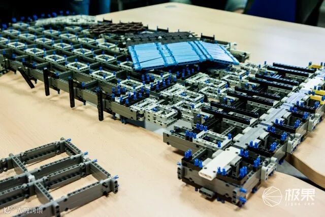 本次布加迪的外壳全部采用乐高科技的零件进行打造,构筑的类似蜂窝的构造,而这样可以实现车身的复杂曲面结构且保证了稳定性。