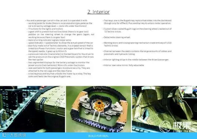 随后乐高也发布了这款1:1布加迪的技术手册《1:1 LEGO Technic Bugatti Chiron technical documentation and features booklet》,详细介绍了这款科技布加迪的内容。