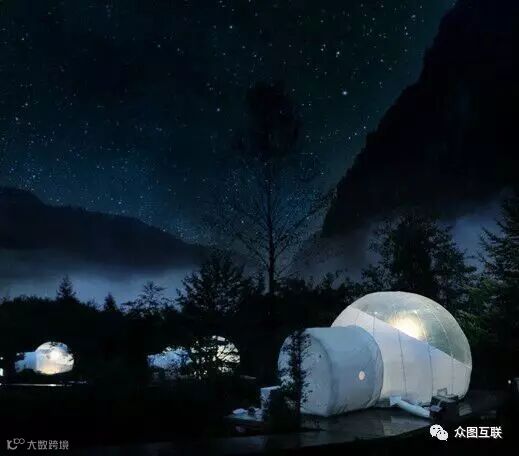 气泡酒店因其便于安装和拆卸,它可以根据客人对景观的不同需求选择最美的风景“按营寨扎”。在安装时,只需要一个隐藏于入口处的充气泵即可在游客面前呈现出科幻感的客房。