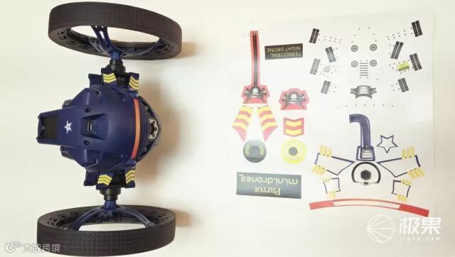 DTing臂环配对的玩具是Parrot弹跳车,Jumping night弹跳车弹跳车外形霸气,配图传、摄像头、对讲、LED探照灯、USB充电插口,内置4G存储,加速度传感器陀螺仪,摄像头上下方还有扩音器和麦克风。