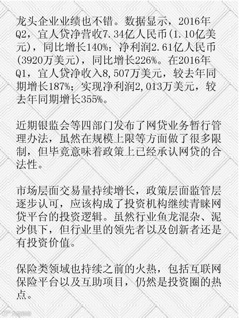 为网贷生态提供支持的模式则还有一定空间,毕竟整个网贷行业的生态还有待于进一步健全,如果能为网贷生态内各个主体提供可以提升效率的服务,还是会有做大的机会并获得资本关注。