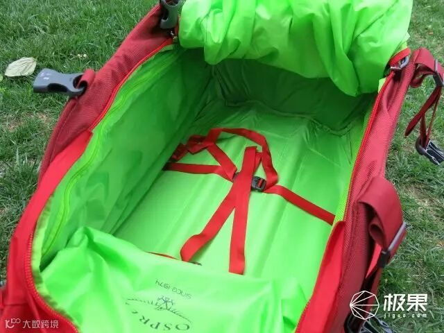 看到主舱的第一眼其实也不是很大,可能受限于刻板印象中常规行李箱的硬壳样子,限制了了长宽高也就固定了体积。但 Osprey 的这款穿梭行李箱不同,虽然长、宽是固定的,但高度却可以根据行李的高度来适时调整变化,也就可以很轻松的调整行李箱的体积。主舱的左右两侧还有贯穿的收纳空间,也可以放置细长型的装备。