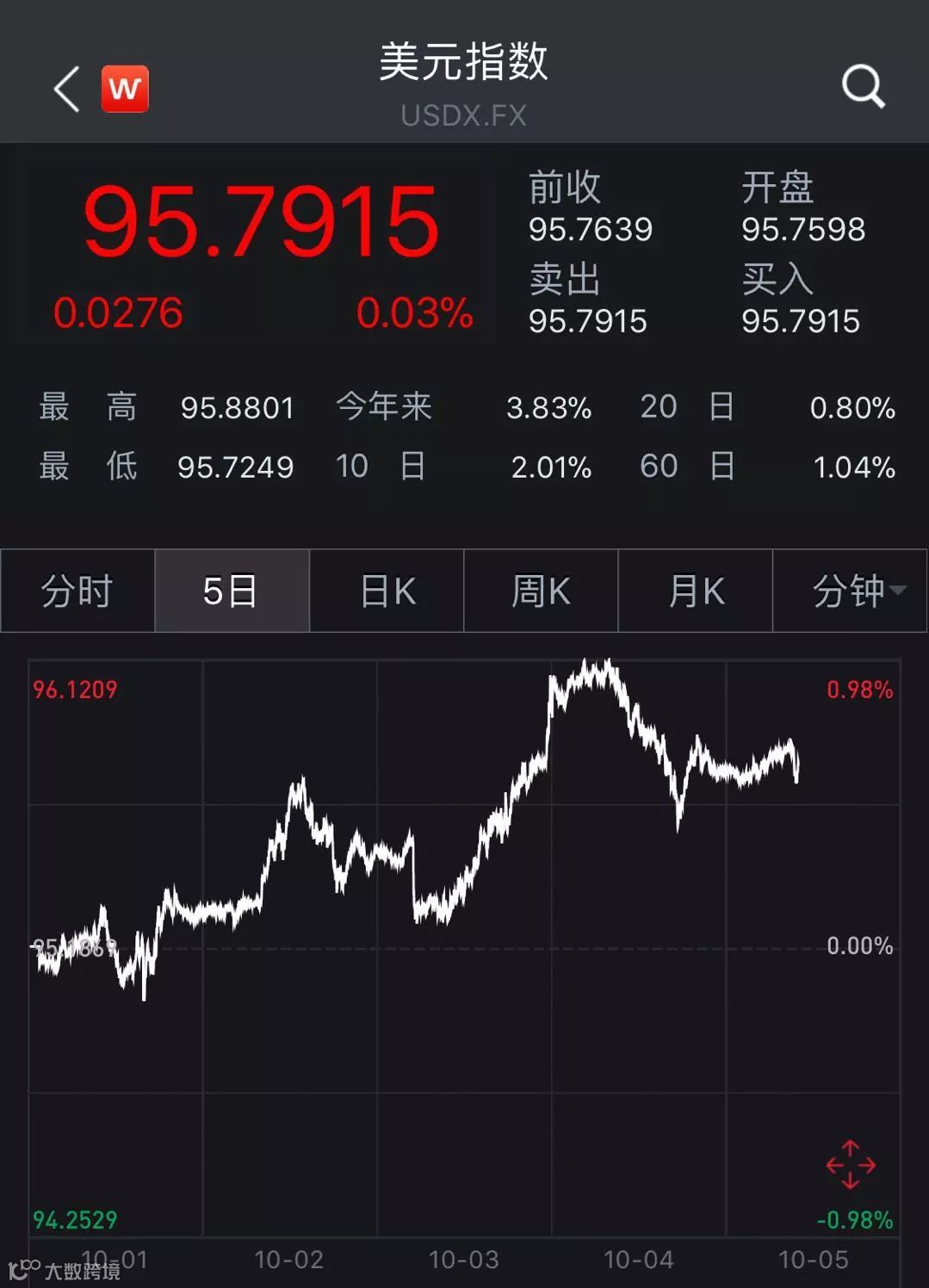 鲍威尔这番话,对许多投资者来说无异晴天霹雳。话音未落,美元指数大涨,讲话期间一度逼近96关口,日内涨幅0.5%左右。采访结束后,在纽约尾盘升破96,创六周新高。