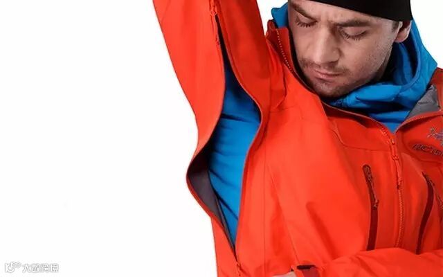 腋下部分采用了Water Tight 拒水拉链,在高强度运动时,可以及时散掉腋下的湿气热气,保持舒适。