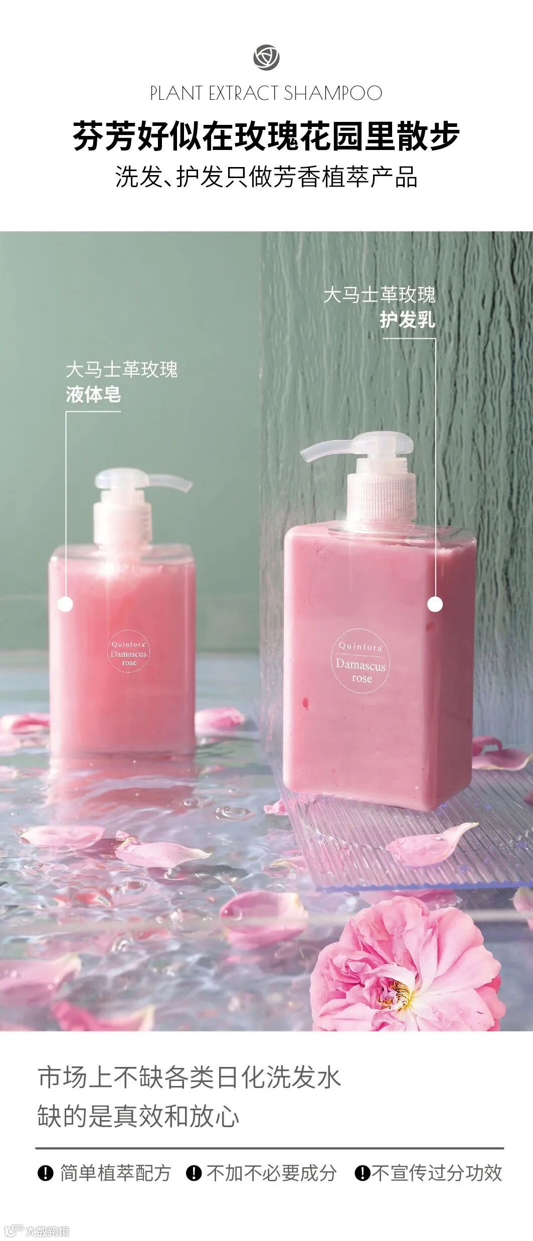 大马士革玫瑰液体皂,洗头皮,洗发根,顺带把发丝也洗舒服。