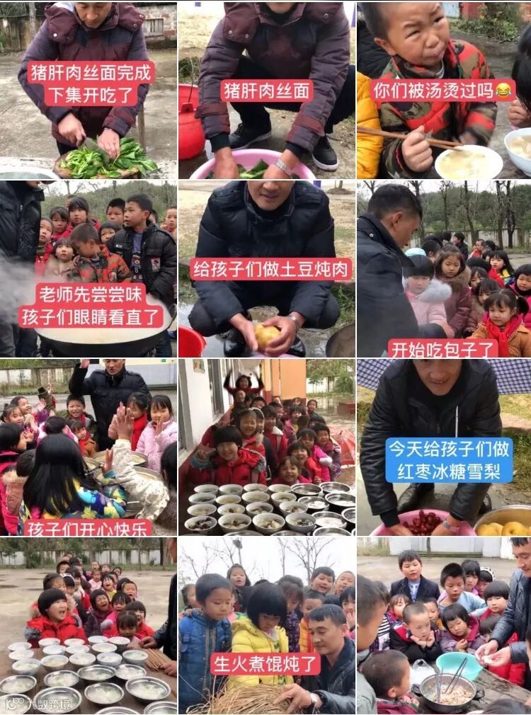 “校长我们今天吃点啥呀?”一帮小朋友仰着稚嫩的小脸,满脸期待地围着一个男人问道。