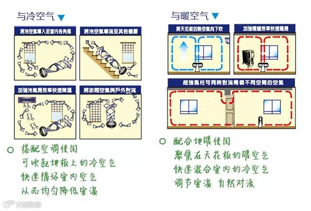 这是空气循环扇一些实用性演示,它的功效就是室内空气完全流动起来,不管是开空调时的室温均匀性,还是开窗透气时的换气速度,都能得大幅的提升。