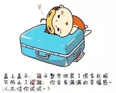 开始装箱了,第一层放薄衣服,第二层放长裤类,第三层再放其他衣服