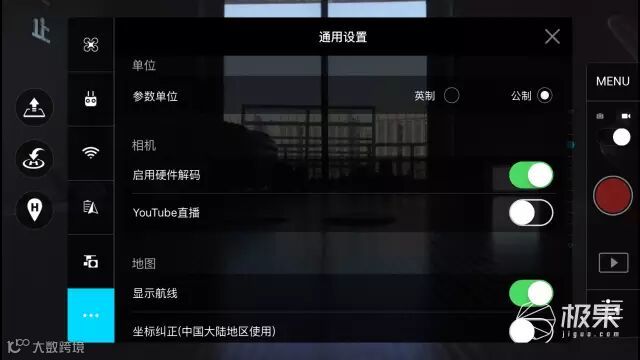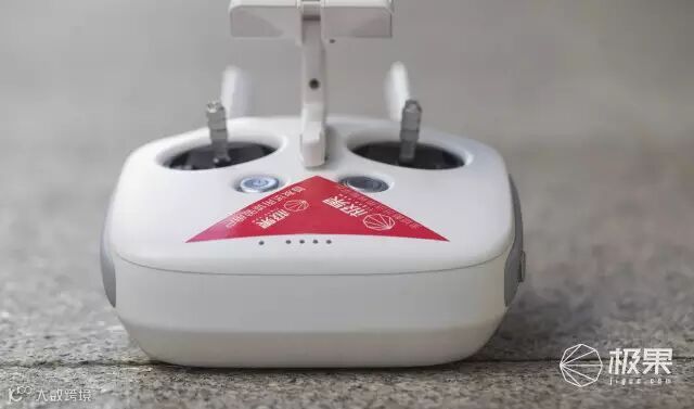 遥控器是自带 WiFi 的, WiFi 密码在遥控器背部,打开手机后,直接输入 WiFi 密码即可连接上,背部有两个自定义按键,可以自己连上手机后根据自己习惯来进行设置,比如可以设置自动返航等功能。另外不得不说的是在遥控器上控制云台的拨轮相比精灵2来说,简直是质的飞跃,可以通过拨动滑轮让航拍在空中拍出非常平滑的运动轨迹。在遥控器的右侧有两个按键,一个是控制相机拍照,另一个是录制视频的功能,相比精灵2的遥控器来说,这些都是非常便捷的。而精灵 3 Advanced 版本的遥控器和这个遥控器基本一样,操作起来非常简单。