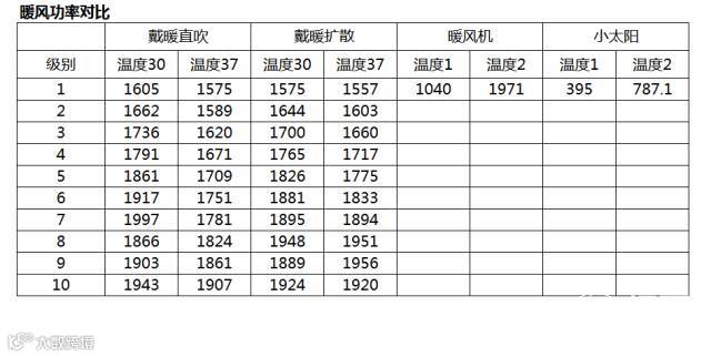 下图是暖风扩散模式37度1-10级的功率~