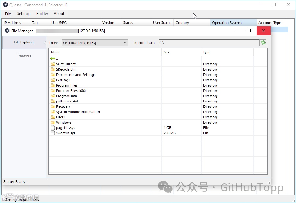 Quasar 是一个用 C# 编码的快速、轻量级远程管理工具。使用范围从用户支持到日常管理工作再到员工监控。Quasar 提供高稳定性和易于使用的用户界面,是您完美的远程管理解决方案。