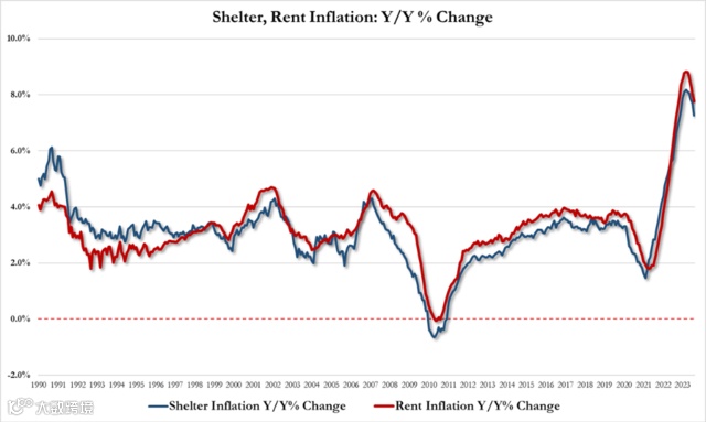 同比来看,住房价格同比增长了7.3%,占核心CPI总增长的70%以上。其他同比显著增长的项目,包括汽车保险(+19.1%)、娱乐(+3.5%)、个人护理(+5.8%)和新车(+2.9%)。