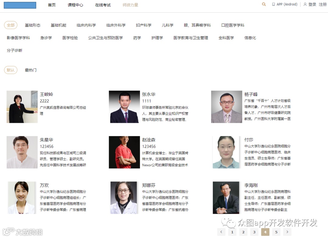 师资力量雄厚,展示平台过人风采,与课程中心相呼应,软硬实力两头抓,提高平台影响力。