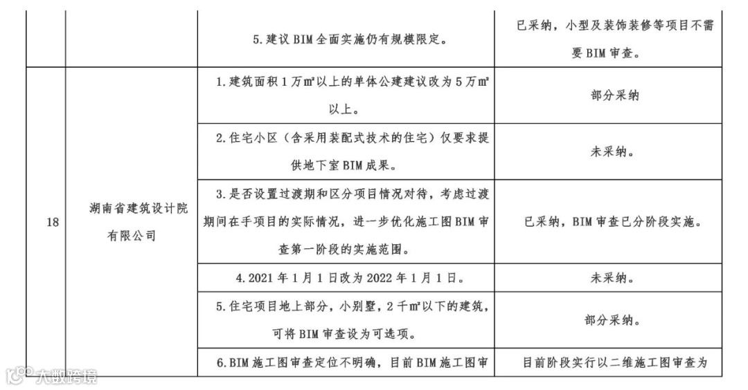 附件:《湖南省住房和城乡建设厅关于开展全省房屋建筑工程施工图 BIM审查工作的通知(试行)(征求意见稿)》反馈意见采纳情况汇总表