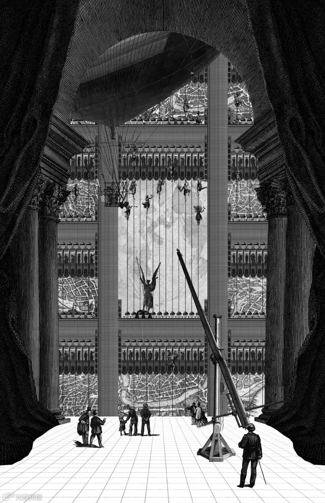 受到意大利艺术家 Giovanni Battista Piranesi 对罗马充满想象力的刻画,以及Alexander Brodsky 和 Ilya Utkin 描述城市和景观的先锋合作作品的启发,Xinran Ma 再一次与 Archdaily 分享他的创作,表达了他 “通过绘图的方式叙述和呈现超越时间的建筑幻想”的热情。