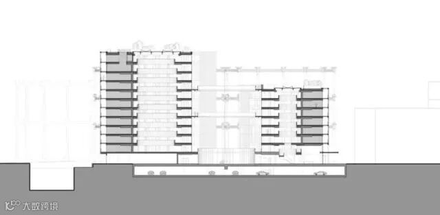 公寓通过一系列圆形走道,围绕着中央庭院连接起来,可以看见水和光相互反射。