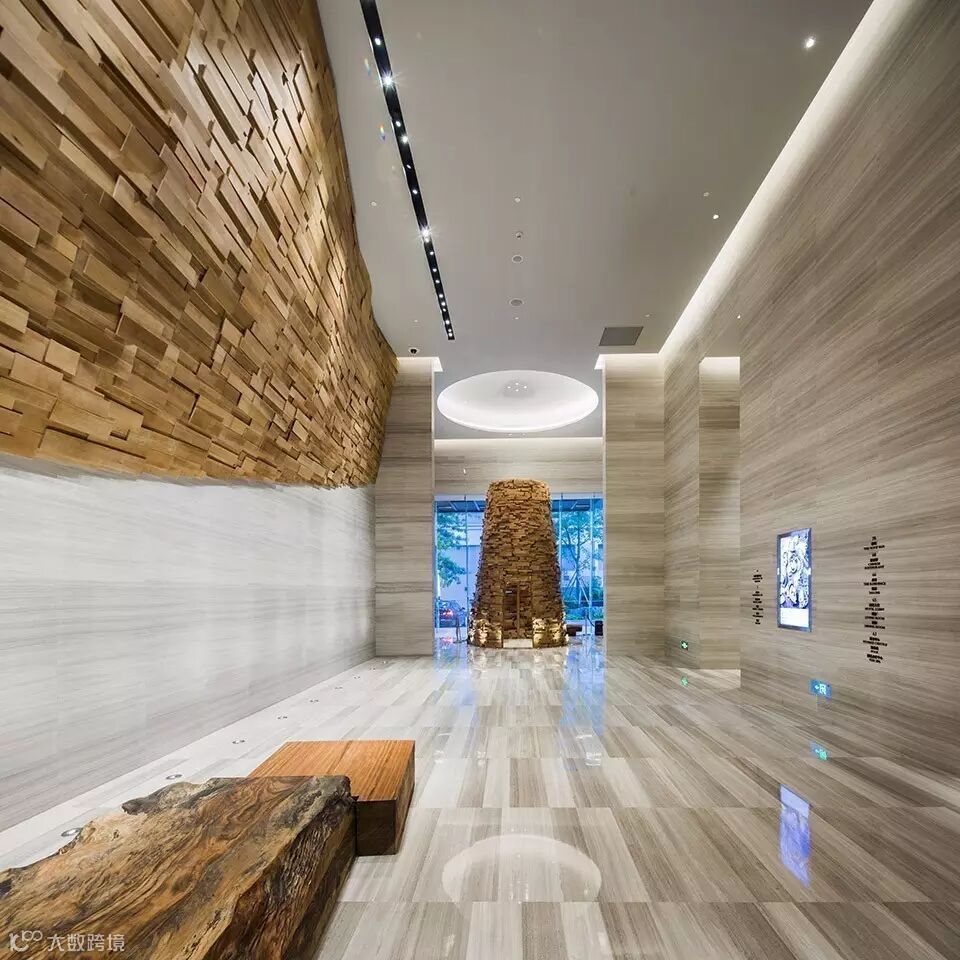 建筑在保证沿街空间活跃程度的同时,也保证了奢华酒店应有的安宁和私密。精心设计的到达接待空间沉稳安静,而其中原木色的雕塑指示着人们前进的方向,也营造出温暖的氛围。60层的无边泳池横跨了建筑,俯瞰着广州城延绵起伏的天际线,而70层的室外露台坐拥繁华的都市景观,也提供着舒适而放松的用餐体验。