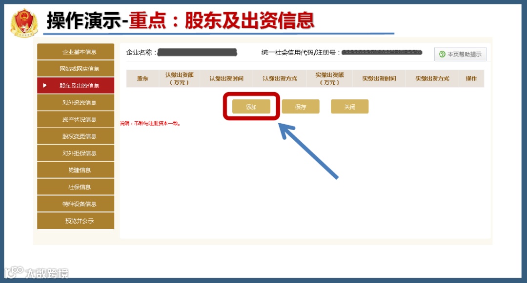 区分年报中的“股东及出资信息”:此处应填写企业最新股东及出资情况,而年报中应填写企业截至2020年底的股东及出资情况。
