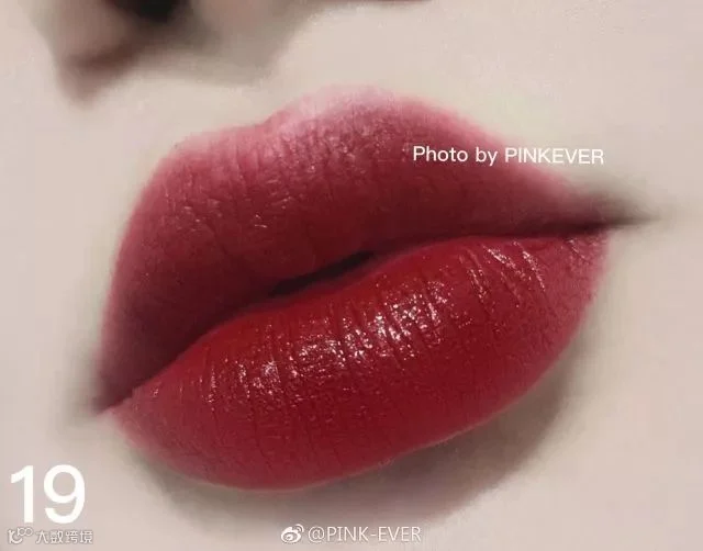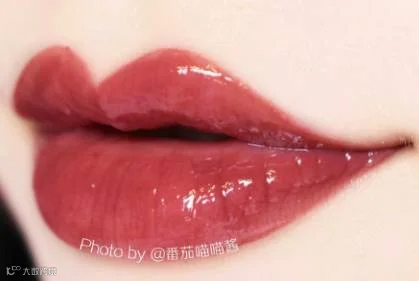 通透姨妈色,润泽不干,薄涂呈玫红,厚涂为玫瑰红酒,复古朦胧感强,显白效果显著。