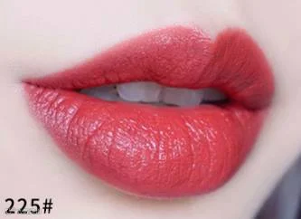 干玫瑰色调,略带豆沙紫调,呈现欧美气质风格。色泽饱满,持久度表现优异,仅在卸妆时稍显困难,整体性价比突出。