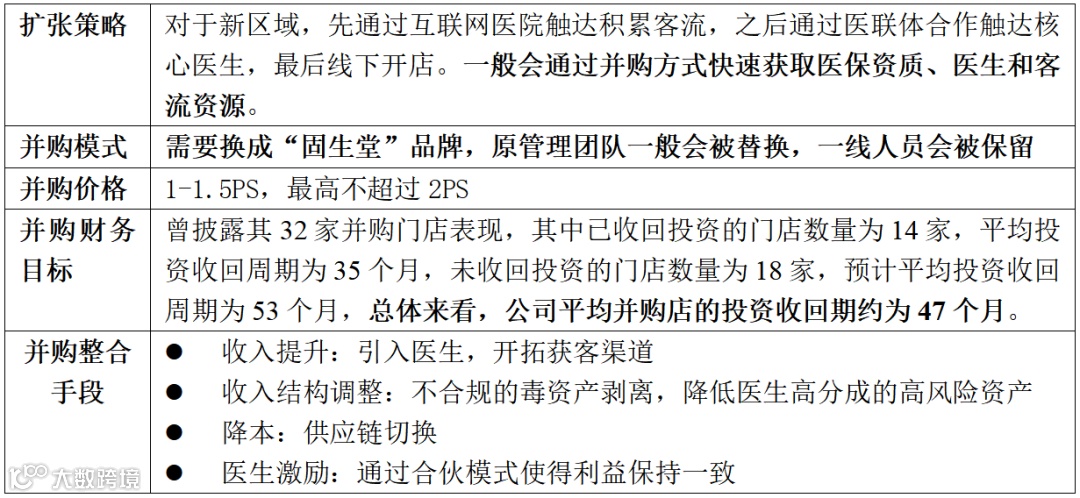 公司对于并购门店有一套成熟的整合模式,包括财务目标、供应链替换、人员支援、专家帮扶、获客渠道调整、品牌赋能等,能帮助并购店实现业绩迅速增长: