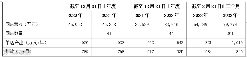 根据公司FY22年报,国内线下门店总GMV为104亿元,期初门店数2939家,期末门店数3226家,期初期末平均门店数3083家,由此测算全国平均单店GMV为337万元/年。